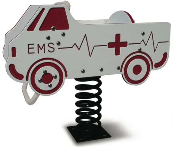 The Single Seat Ambulance spring bouncer is equipped with handgrips and designed with closed sides for added safety. The UV stabilized polyethylene adds durability so your children can use and enjoy this playground item for years.