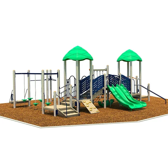Kids will enter a world of imagination and relaxation thanks to the interactive Bridge Station Playset. The large play structure features a bevy of fifteen incredible activities, including the Triple Slide, Rock Climb, Playpod Traverse, Whistle, Turning Bar, Push & Pull, Playshell Spiral, Playshell Double Seat, Net Cargo, Bubble, Enclosure Xylophone, Overhead Wave Ladder, and Invent-a-Game. The Bridge Station is perfect for children ages five to twelve of all ability levels, and a wheelchair-accessible station makes the Bridge Station ADA compliant. The wood frame is constructed from 64% Forest Stewardship Council wood content, so it’s a sustainable choice. The playset has a use zone of 49'10" x 39'2" and accommodates up to 55 kids.