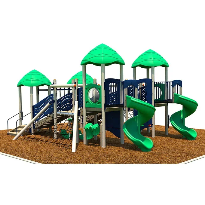 Kids will have an endless amount of fun on the Continuum playset. This playset features a ton of great activities net climbers which are used to navigate from place to place. This includes the Net Cargo, Hammock Net bridge, and large Net Climber. There is also a Playpod Traverse for getting from one side to the other. Both sides of the playset have awesome 66-inch spiral slides, so that everyone will get plenty of chances for a turn, even on crowded playgrounds. The Continuum is available with your choice of weather-resistant wood or sturdy metal building materials.