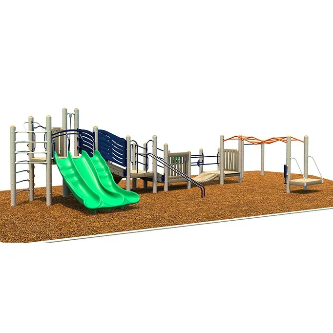 Travel to a magical marshland with the interactive, sprawling Everglade Playset. Constructed to accommodate up to forty children ages five to twelve, the Everglade model features a collection of twelve activities sure to engage kids in social and physical play. The Everglade includes a cluster of climbers, including a Curly Climber, Mountain Climb with Rope, Rock Climb, and a Firefighter Climb. It also boasts a Triple Slide, Whistle, Turning Bar, Bridge Suspension, and Big Wheel. The playset is crafted from 66% Forest Stewardship Council approved wood content, making it a sustainable choice, and it sports recycled content like scrap metal in its details. A wheelchair access points make the jungle gym ADA accessible for explorers of all ability levels.