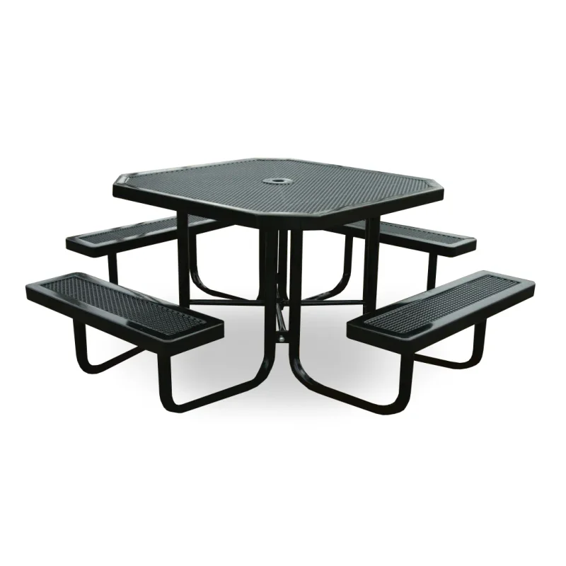 When it comes to choosing a picnic table for your outdoor recreation or dining areas, you want something that will look great and stand the test of time. The seat and tabletops of the Innovated Octagon Portable Table by Webcoat feature a stylish perforated metal surface that helps cool the commercial-grade furniture in the summertime and accelerate drying after a rainy day. This 46-inch diameter table is available with three or four attached seats and its framework is constructed of durable 1-⅝-inch steel legs. The furniture comes in your choice of colors, both for the powder coated framework and the textured polyethylene seats and tabletop. Speak with a AAA State of Play salesperson to discuss getting the look you are trying to achieve. Both coatings are known for their increased durability and resistance to damage and will provide your investment with years of use with very little maintenance required.