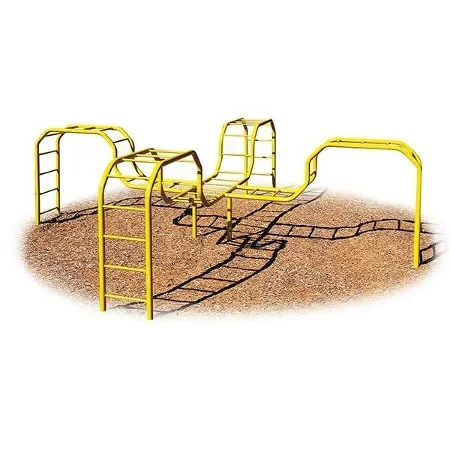 The fun of a climber is in the challenge of pushing your physical bounds. The unique shape of the Quad Camel Climber presents a particularly difficult challenge because of the sloping shape. Children need to use more strength to pull themselves up and then back down along the hills in the structure. It is further complicated by the fact that all four sets of bars merge together in the center. A child can then decide which direction to take and each time they can change their direction. Even though the Quad Camel Climber’s use zone is 27’8” x 27’8”, it still provides children a place to enjoy hours of imaginative play.