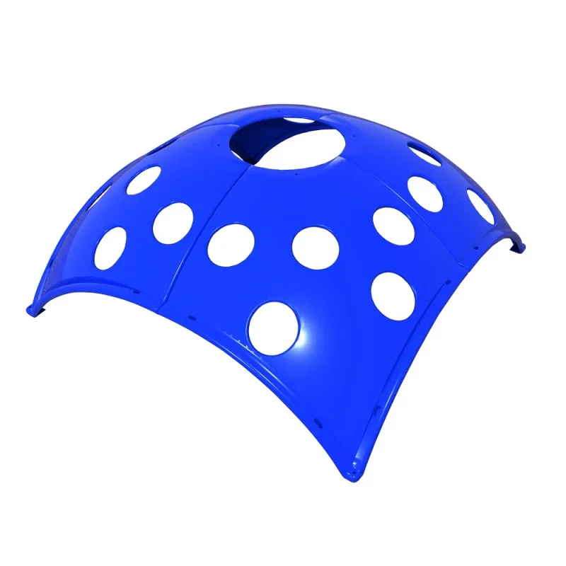 The Rabbit Hutch is a 5 foot square aluminum climbing dome. It is a great independent climbing option for younger children. The dome is powder coat painted as shown for extreme durability under heavy use. Permanent climbers include an anchor kit. Select this from the pull down menu to add to your order. Permanent climbers are necessary for most commercial applications.