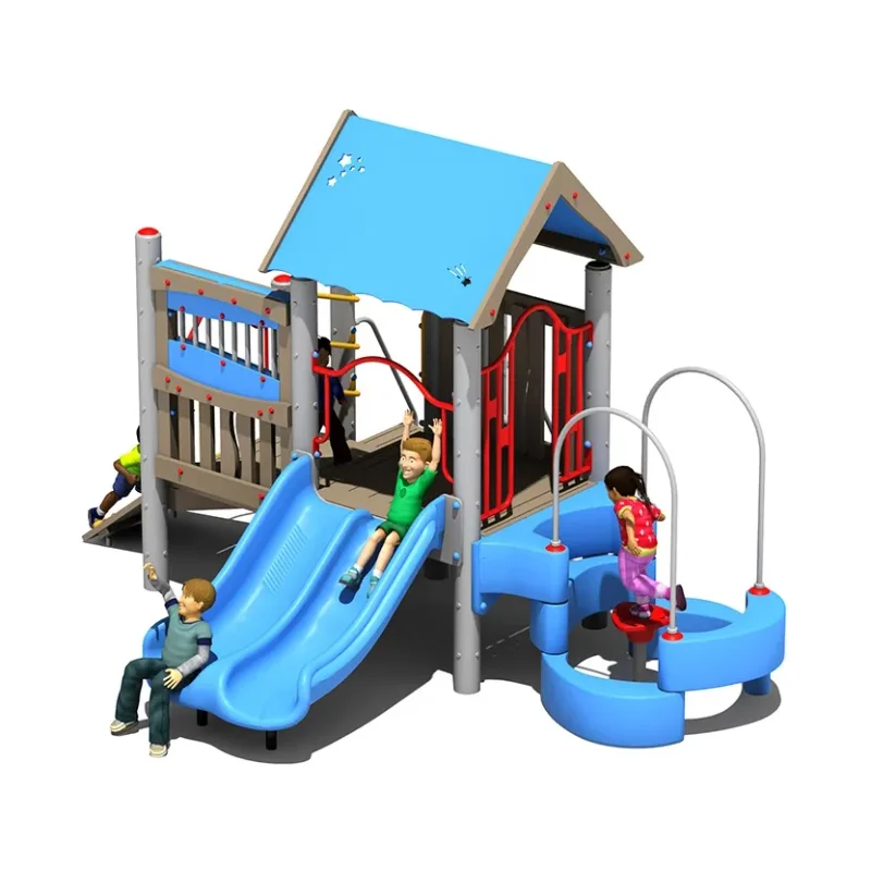 “Rocky Top, you’ll always be home sweet home to me.” And truly, with the Rocky Top playset, children will feel right at home, engaging in hours of imaginative play. This vibrant and inclusive set features five activities, including a DuoChute Slide, Playshell Climber, Rock Climb, Xylophone, and Whistle. It also has a wheelchair accessible transfer point, making it a wonderful playset for kids of all ability levels. And since it’s composed of 77% recycled content, including 8,440 re-used milk jugs, the Rocky Top is truly an eco-conscious recreation choice. Ideal for children ages two to five and older, the playset measures 28'0" x 25'6" with a fall height of three feet.