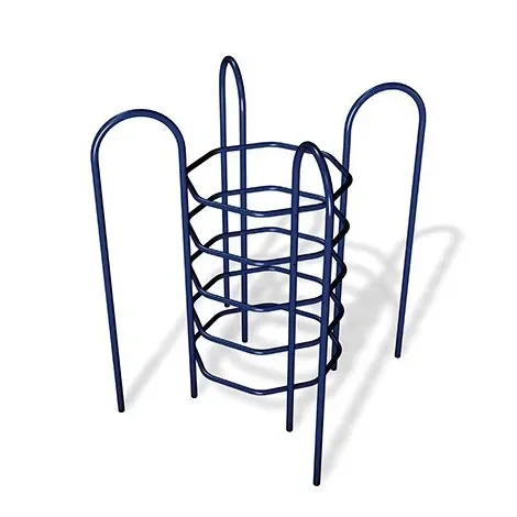 Survey the playground from atop the barrel-shaped metal Silo Climber. Made for children ages 5 - 12, it provides an excellent place for children to work on their core muscle strength by lifting themselves up as they scale it. The rounded shape with four arched vertical poles is a convenient shape for multiple children to climb. The horizontal poles create an area that can be climbed safely. In particular, the octagonal inner bars create corners that can be held onto with a greater level of security. This structure is freestanding making it a great complement to existing equipment or one of our other playground equipment pieces.