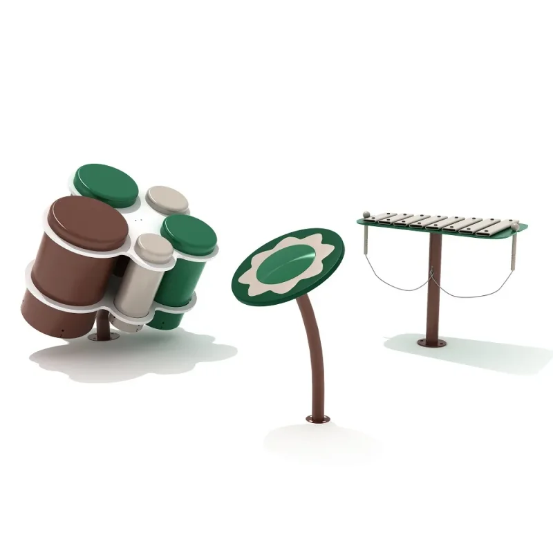The Sunny Sounds Music Package brings a bright, musical flair to any playground it’s placed on. With so many choices among various types of playground equipment, music amenities stick out thanks to their interactive and fun nature. For instance, the Honeycomb Hand Drums allow various tones of percussive music to be made, and are arranged in a creative yet intuitive way, making them a great option for small children who wish to engage their creative brains. Meanwhile, the Flower Drum offers visual and practical appeal through its flowery shape and the pleasant tone it emits when struck. Lastly, the Glockenspiel can be used to make simple songs, and can be played by multiple children at once.