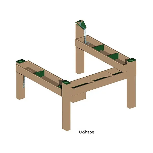 The U-Shape Triple Water Trough is a large water activity that can entertain large numbers of small children with its cascading streams of water. The water starts at the top trough, where you can attach a garden hose to start the waterfall that eventually travels all the way to the drain at the end of the third trough. Beneath that, a simple basin can be used to collect the water. Kids will love following toy boats or rubber duckies as they float downstream. The water can also be used to teach early science lessons about water and buoyancy.
