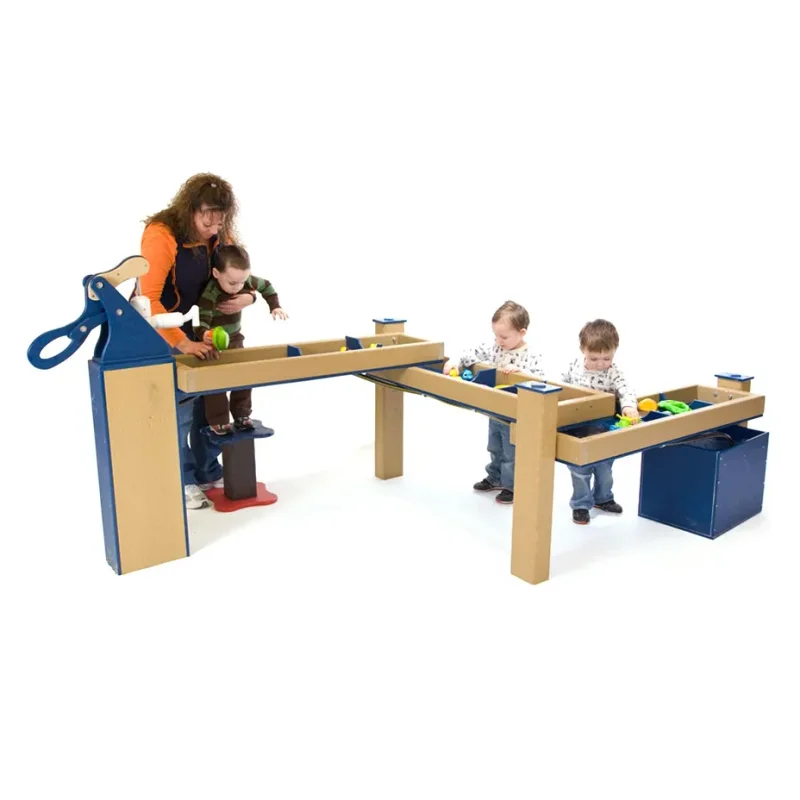 Kids will love the wild shape of the Zigzag Recirculating Water Trough as water flows back and forth as it cascades through each section. The series of dams in each section also affect the flow, causing some fun variance. Preschool aged children love tactile play activities like this, and will delight in watching bath and pool toys float down the river. The current is created by the hand pump, which draws the water from a reservoir at the end of the river. This means that no running water needs to be attached to it, and no water is wasted.
